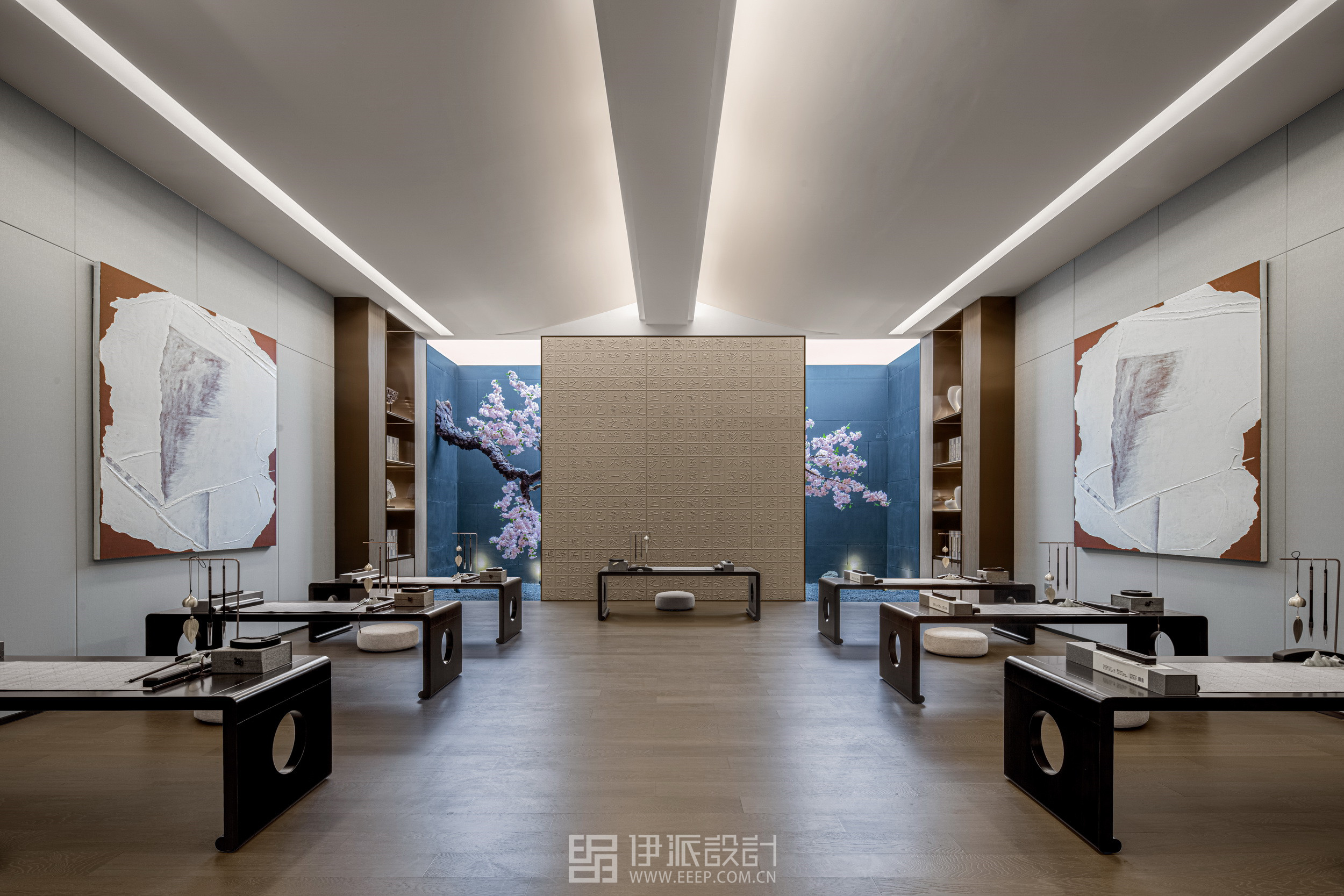 營(yíng)造城市中的“桃花源”,描摹人與自然和諧、純粹的共生之美。本案為宿州·萬(wàn)成·桃花苑營(yíng)銷中心的泛會(huì)所空間。營(yíng)銷中心共三層,一層為樣板房以及辦公空間,二層為售樓處主要空間,本案位于營(yíng)銷中心負(fù)一層,功能全面,動(dòng)靜相宜,可作為業(yè)主配套使用,打造樓盤獨(dú)特性,增加營(yíng)銷賣點(diǎn)。