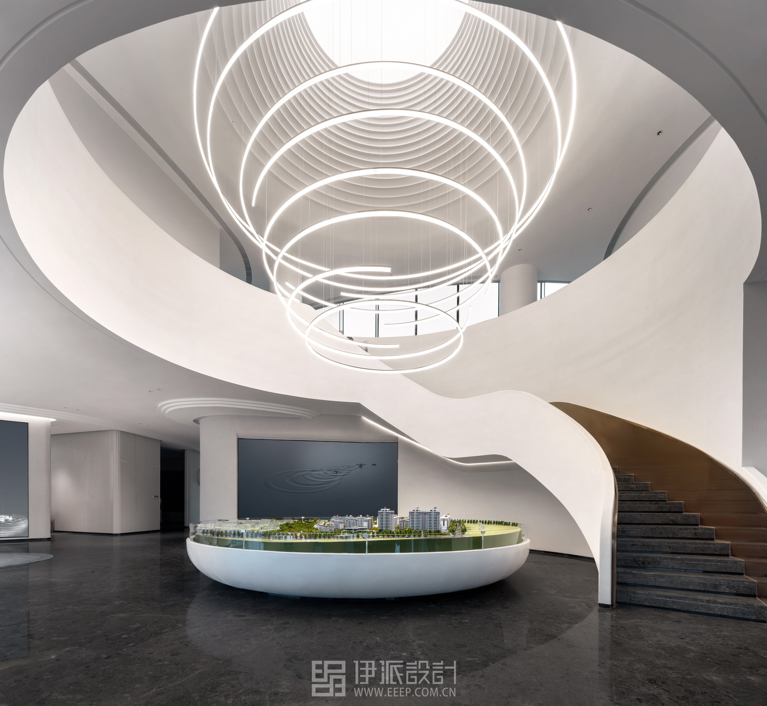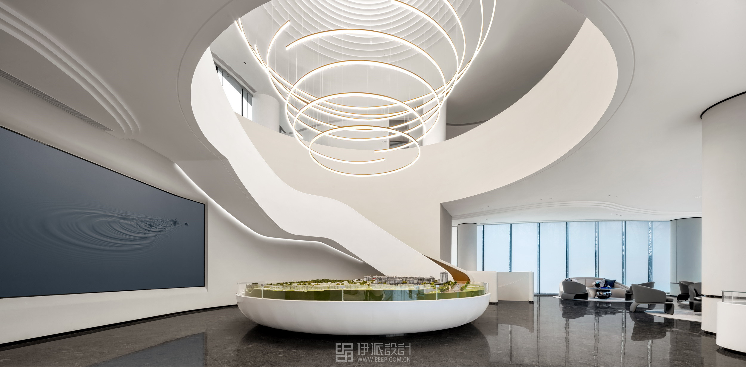 流動(dòng)、秩序、韻律、超越,本案是科技感與藝術(shù)感的交匯相融,借助科技元素的融入、光影的調(diào)和,整個(gè)售樓空間看似無常,實(shí)則充滿變化,前衛(wèi)摩登。