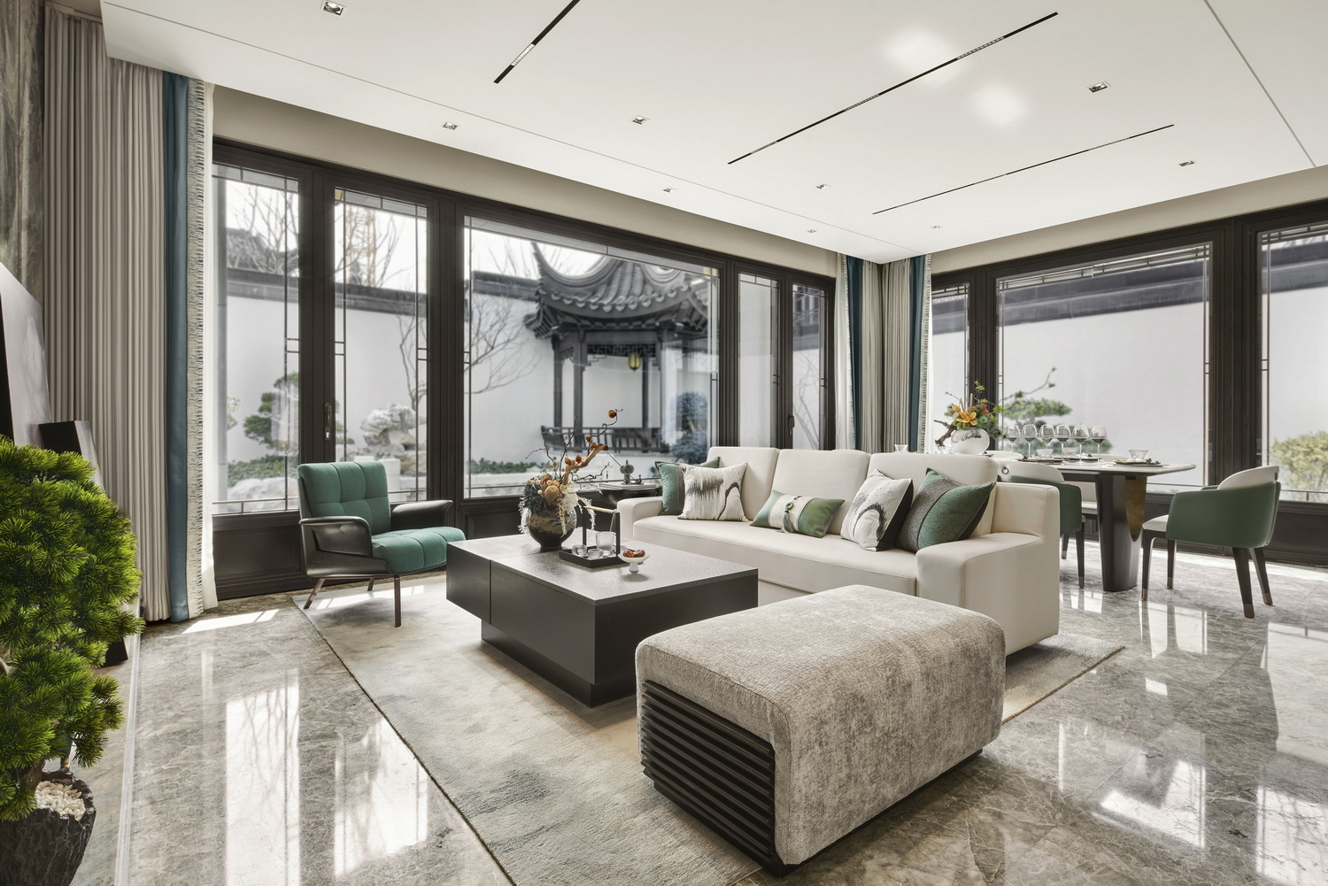 項(xiàng)目位于泰州城北板塊,項(xiàng)目以拙政園、留園等蘇式名園為圓點(diǎn),打造具有五進(jìn)歸家禮序;結(jié)合中國傳統(tǒng)園林“借景”等手法,布置園林,創(chuàng)造意境。